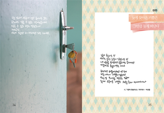 »ç¶û ¶§¹®¿¡ ºñ½ÁÇÑ ¸¶À½º´À» °¡Áø »ç¶÷µéÀ» À§ÇÑ Ã¥À¸·Î, ½Ã·Î ¾´ °¨¼º ¿¡¼¼ÀÌ¿Í ¼Õ±Û¾¾, °¨¼º »çÁøÀ¸·Î ±¸¼ºµÈ ¡®Sentimental Book!¡¯ÀÌ´Ù. 20´ë´Â ±â»ÝÀ¸·Î, 30´ë´Â ¾ÆÇÄÀ¸·Î, 40´ë´Â ±×¸®¿òÀ¸·Î ÀÐÀ» ¼ö ÀÖ´Â À̾߱âµéÀÌ °¡µæÇÏ´Ù. »ç¶ûÀÌ °¡±î¿öÁö¸é À̺°ÀÌ °¡±î¿öÁö°í ¹Ý´ë·Î À̺°ÀÌ °¡±î¿öÁö¸é »ç¶ûÀÌ °¡±î¿öÁø´Ù. »ç¶ûÀ¸·Î »ý±ä ÀÌ ±â¸·Èù ¸¶À½º´À» À̰ܳ½ ¸¶Áö¸·Àº Ç×»ó ±× ¾ÆÇİú ½Î¿ö ´õ¿í ¾Æ¸§´Ù¿öÁ³´Ù´Â °ÍÀÌ´Ù. »ç¶û¿¡ ÈûÀÌ µé ¶§, »ç¶û¿¡ ÁÂÀýÇÒ ¶§, Á¶±ÝÀÌ¶óµµ ¸¶À½ÀÇ ÁüÀ» ´ú°í ½ÍÀ» ¶§¿¡ ÆîÃĺ¼ ¸¸ÇÑ ±ÍÇÑ Ã¥ÀÌ´Ù.